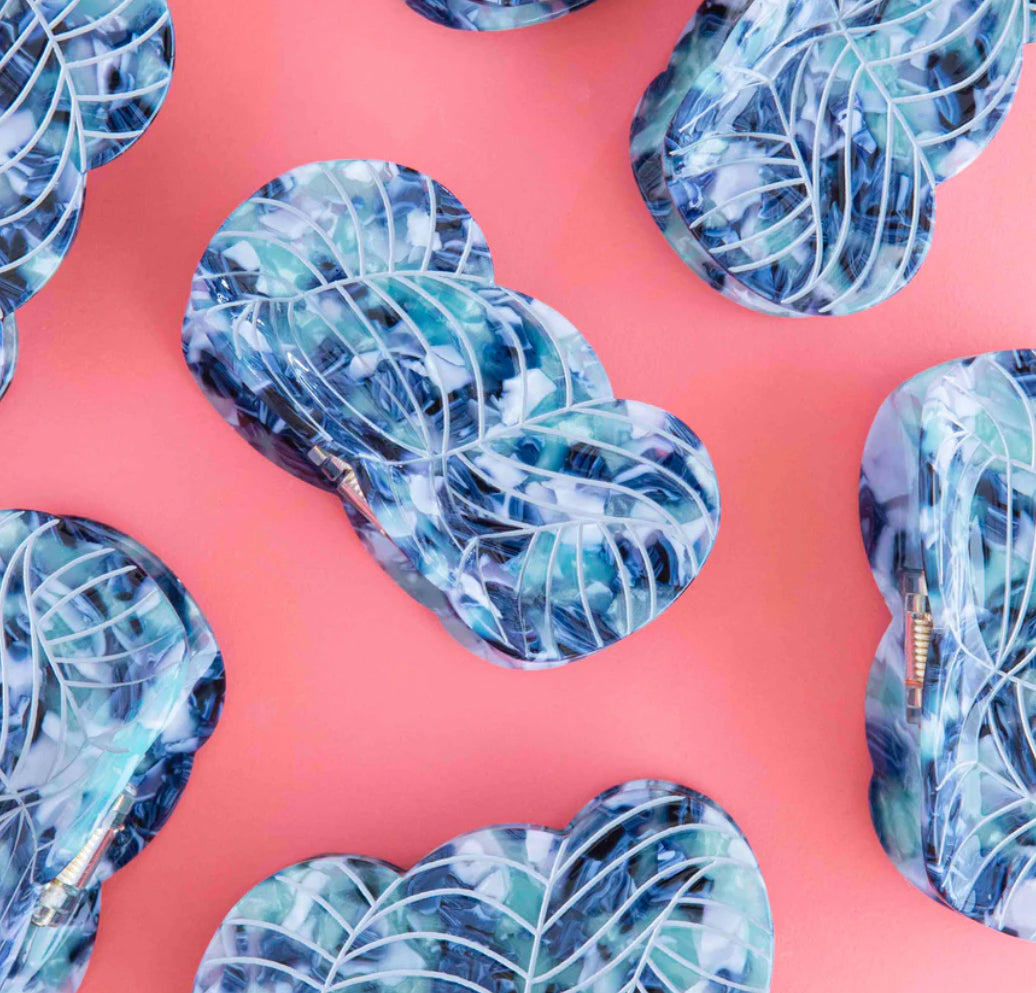 Perfect for knitters and crocheters, the Blue Yarn Hair Claw Clip is made from eco-friendly cellulose acetate. Its tortoise shell design shines with iridescent blues and grays, accented by embossed lines that add texture and charm. This playful clip keeps hair neatly in place while showing off your love for yarn crafts. Like all our hair accessories, it's made from plant-based cellulose acetate, meaning it's biodegradable and better for the environment.