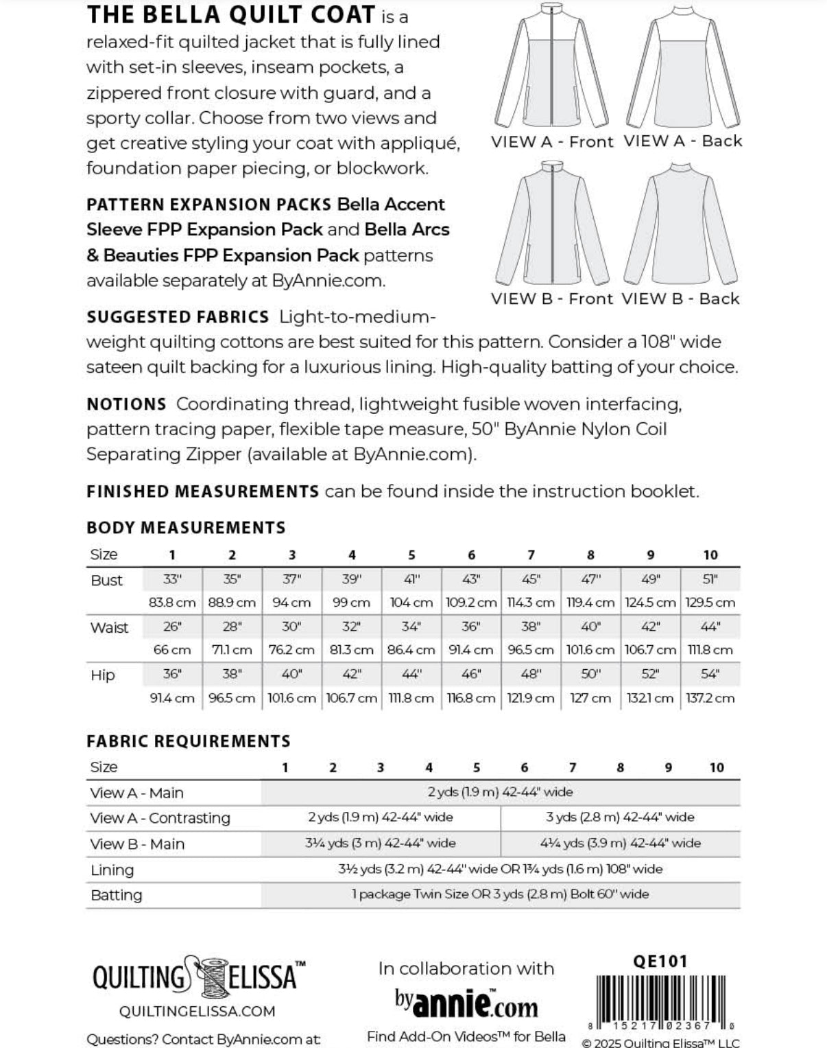 Preorder - Bella Quilt Coat - Quilting Elissa X ByAnnie Patterns