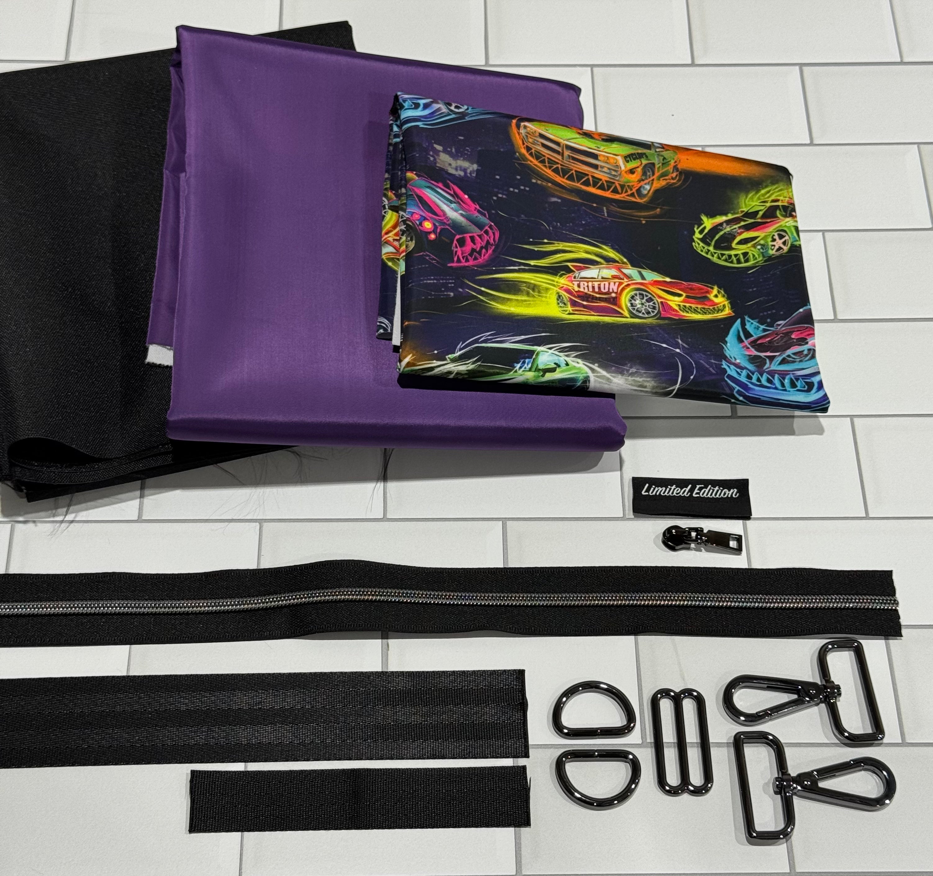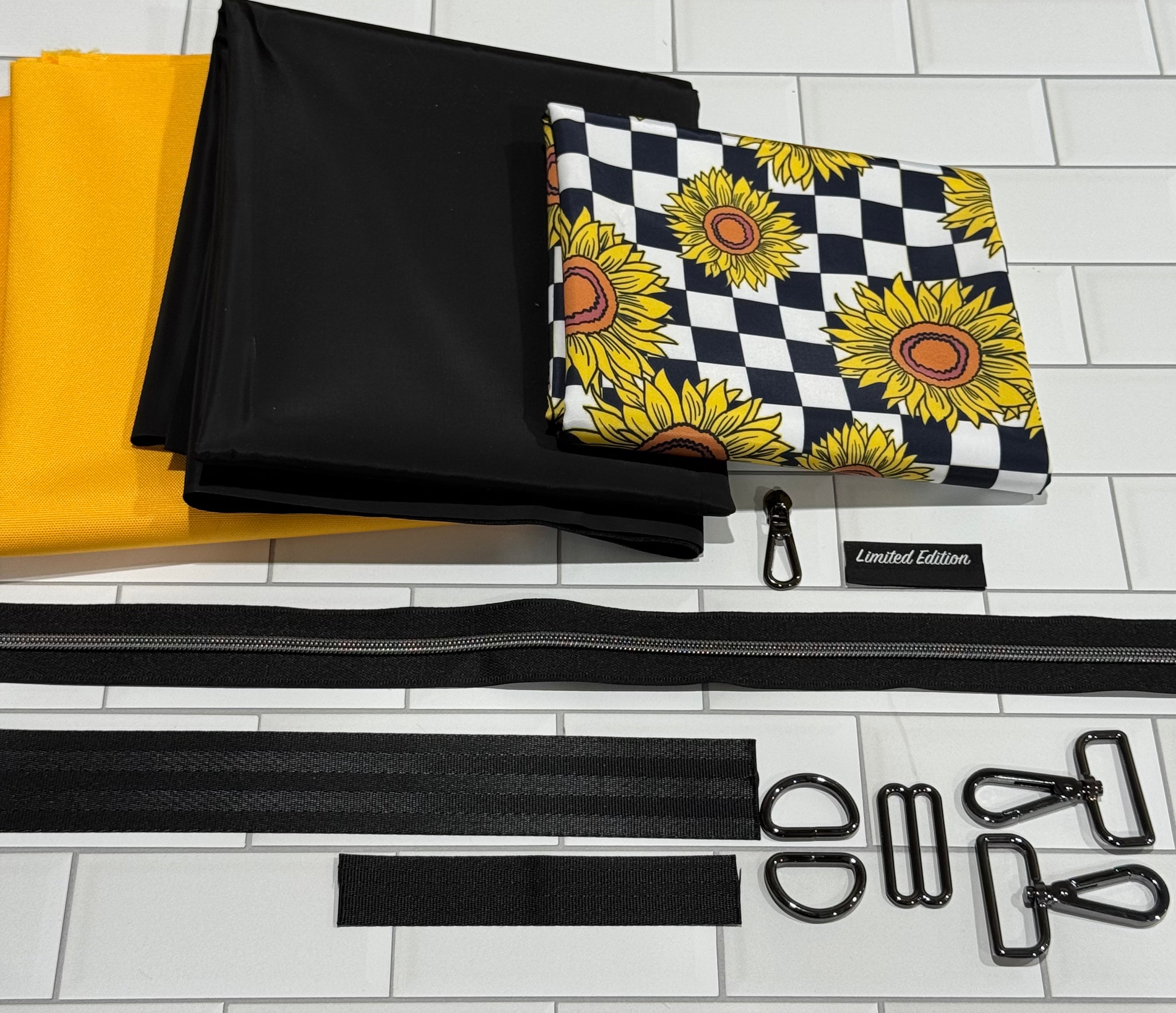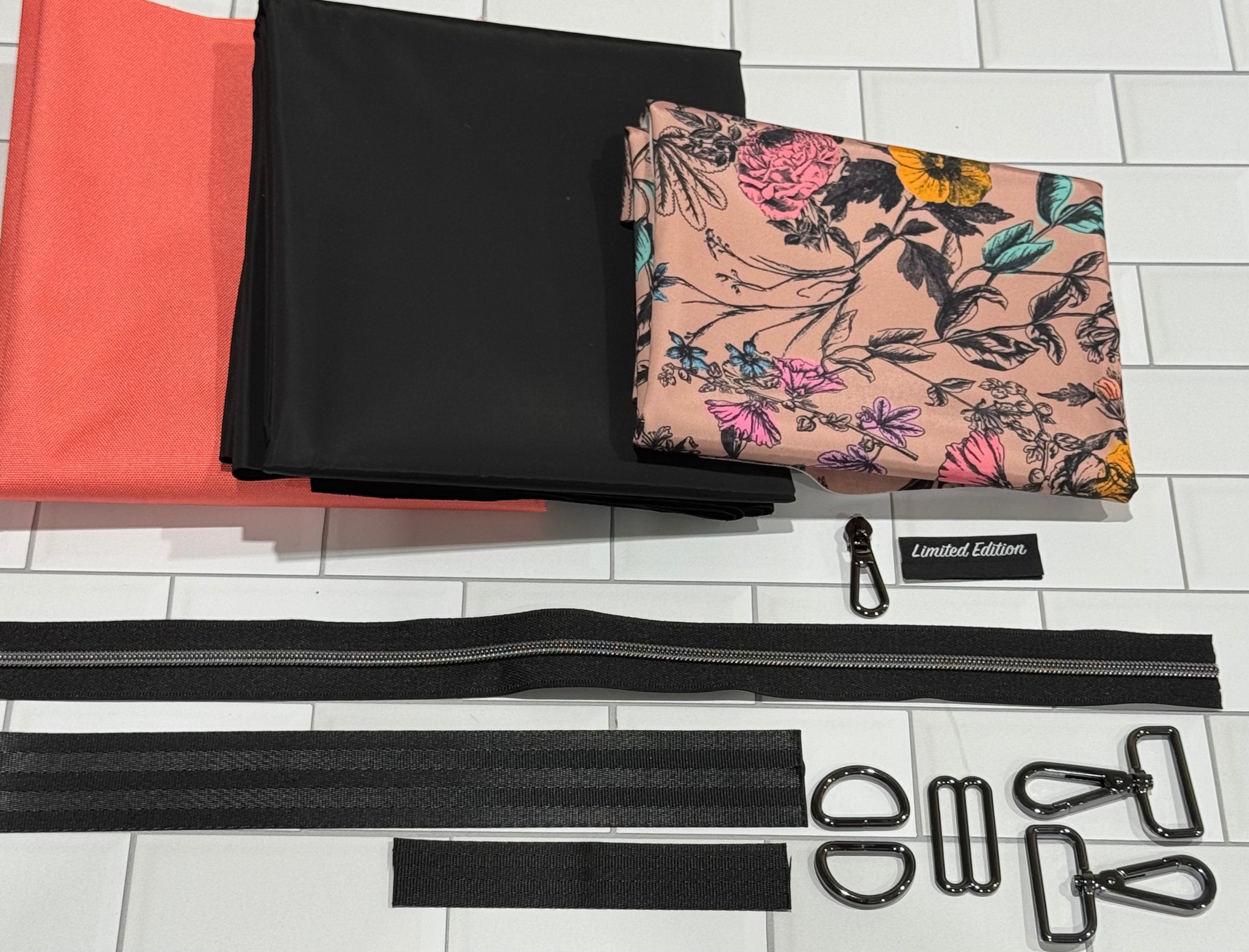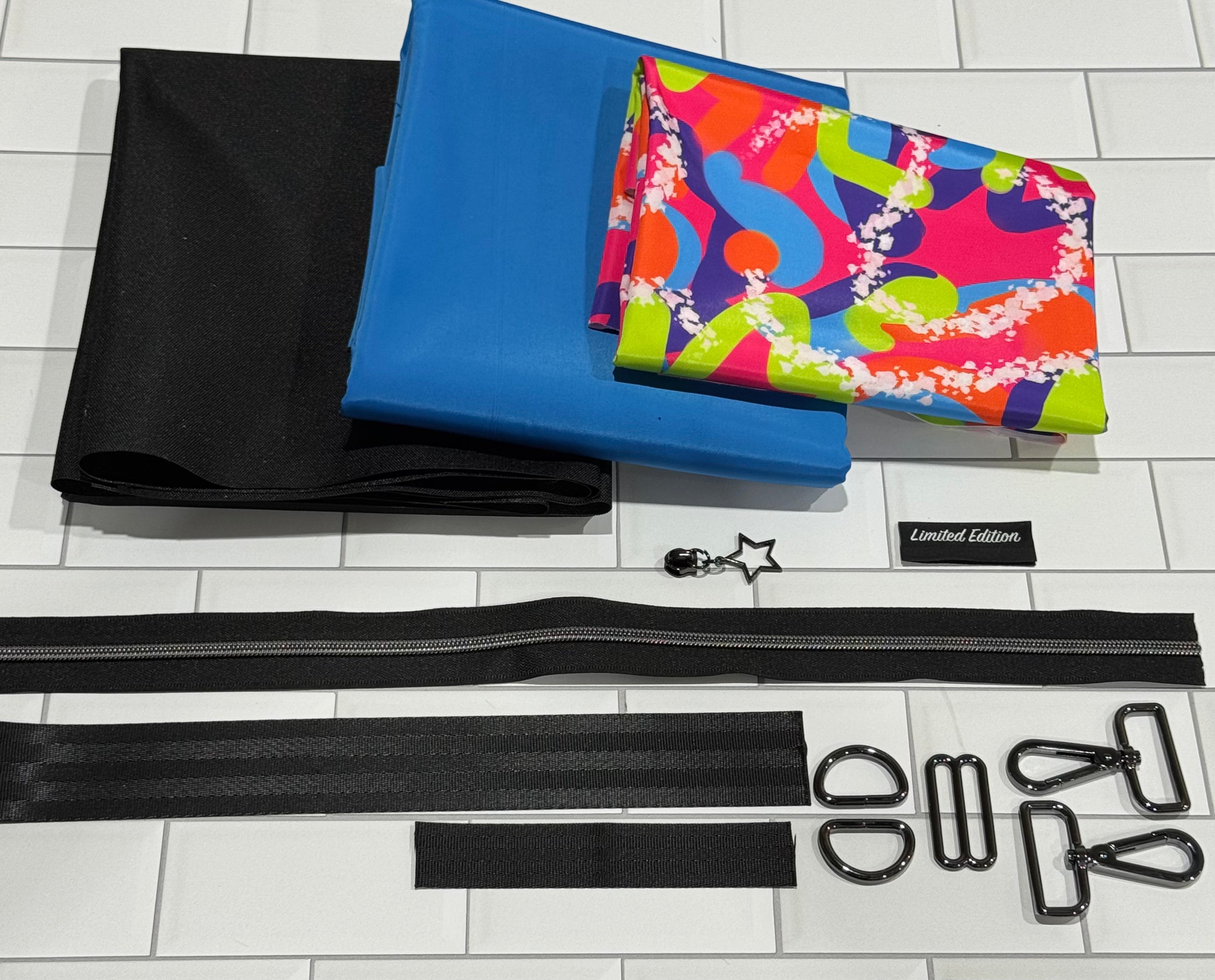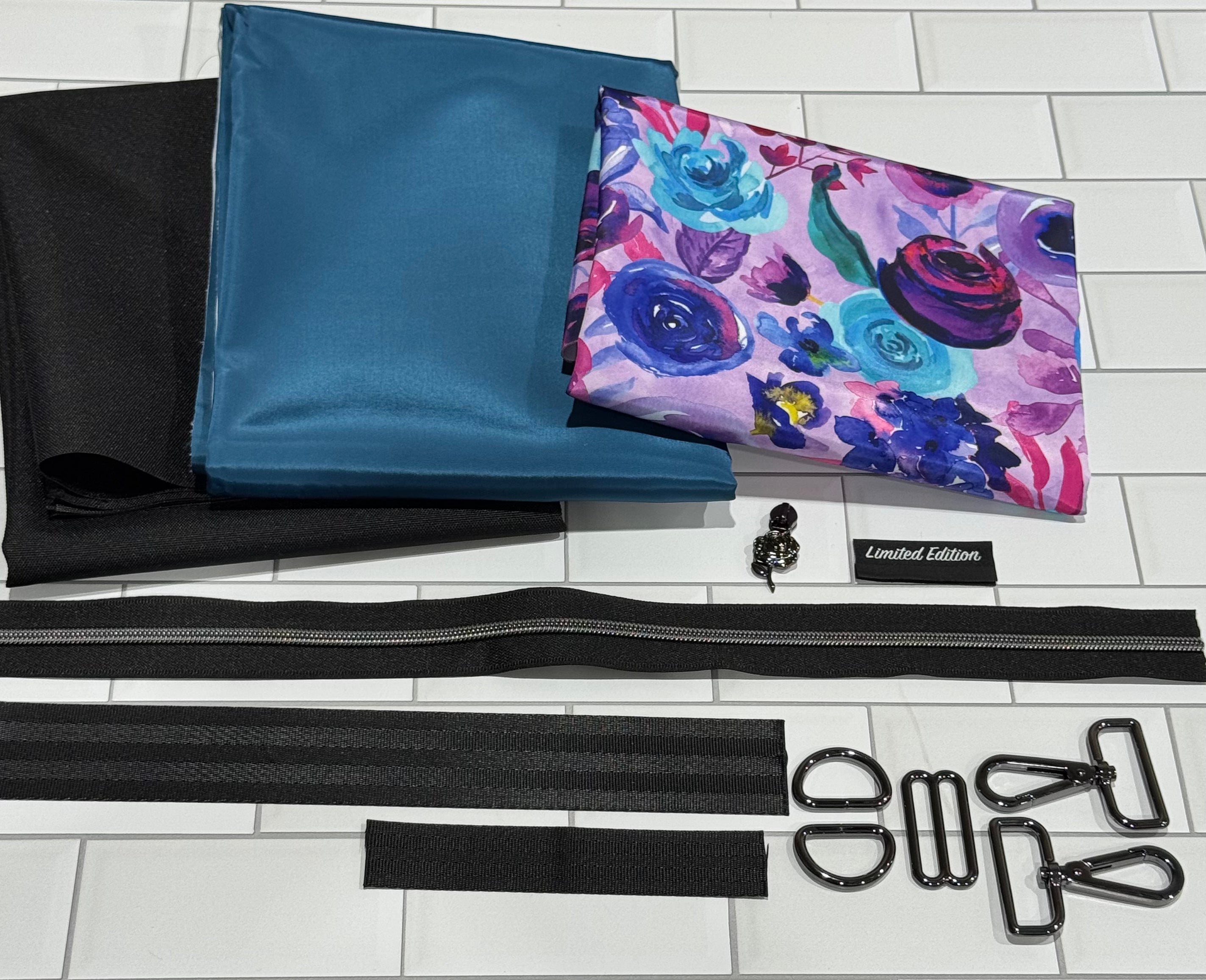 Included you will have 1/2 yard of each material (2 pieces) so you can choose the exterior and a 1/4 yard for the accent, along with all of the needed hardware.