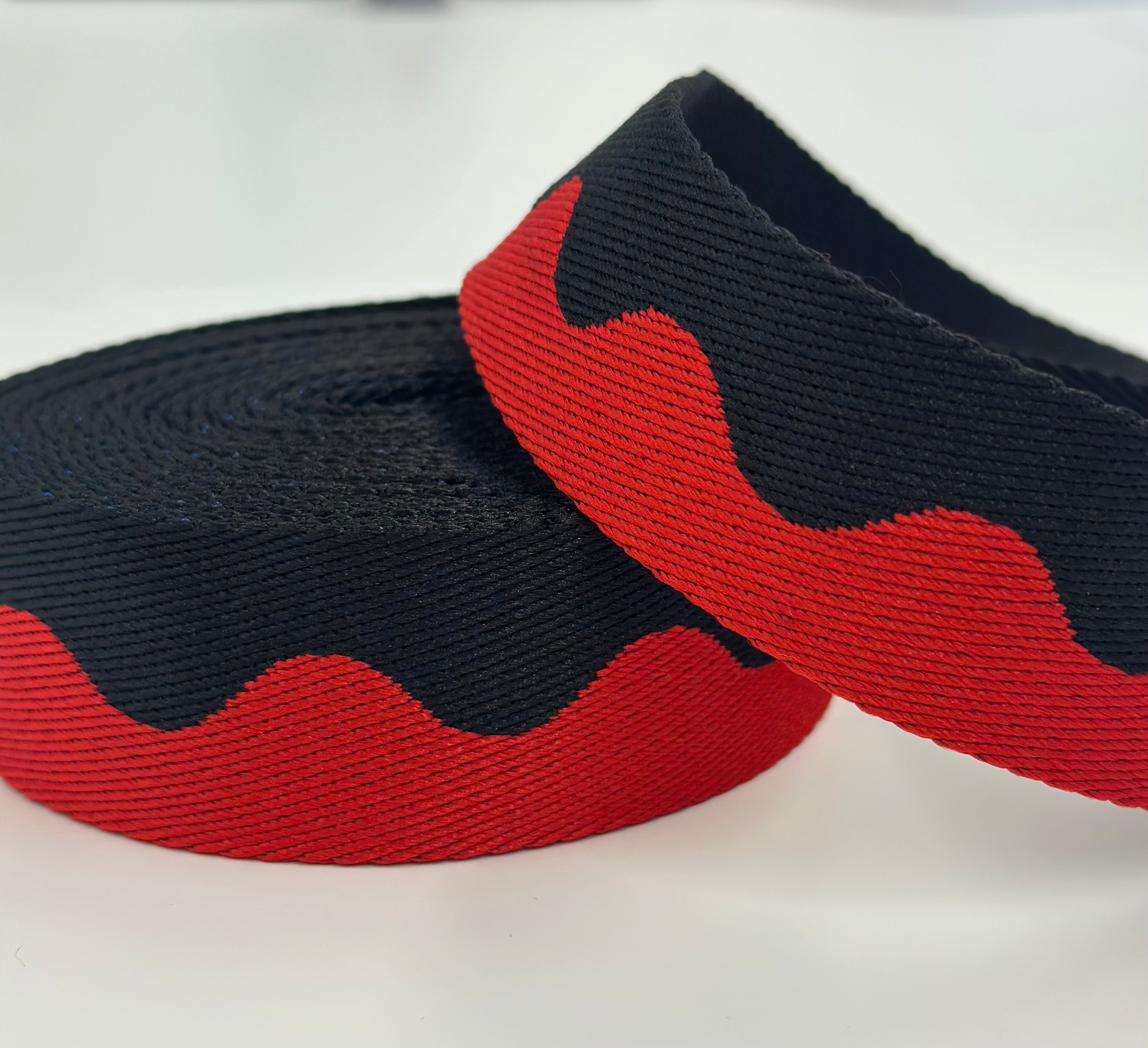 Black/ Red Two Toned Waves 1.5” Woven Webbing