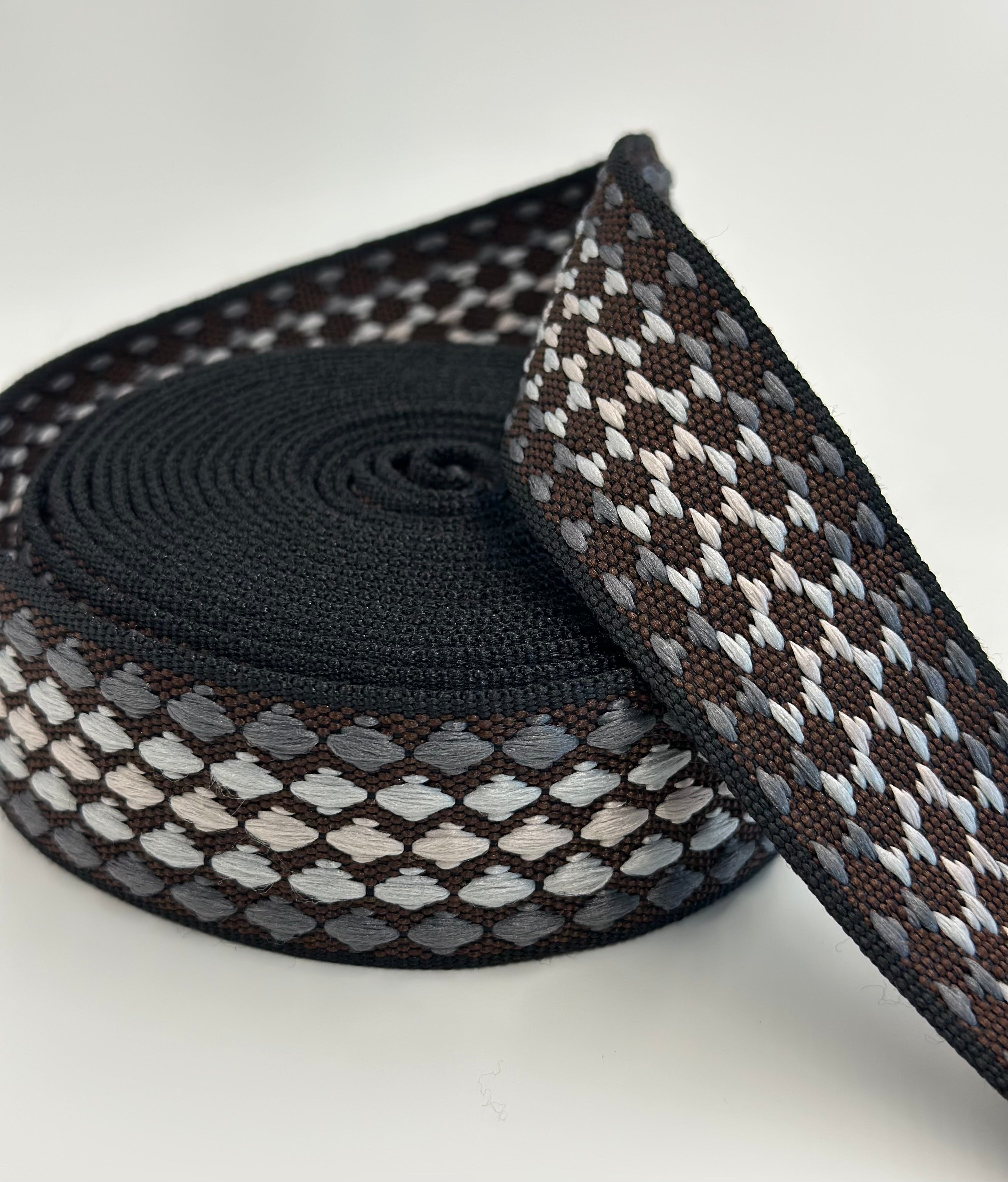 Monochrome on Brown Vintage Sweater Vibes 1.5” Polyester Webbing