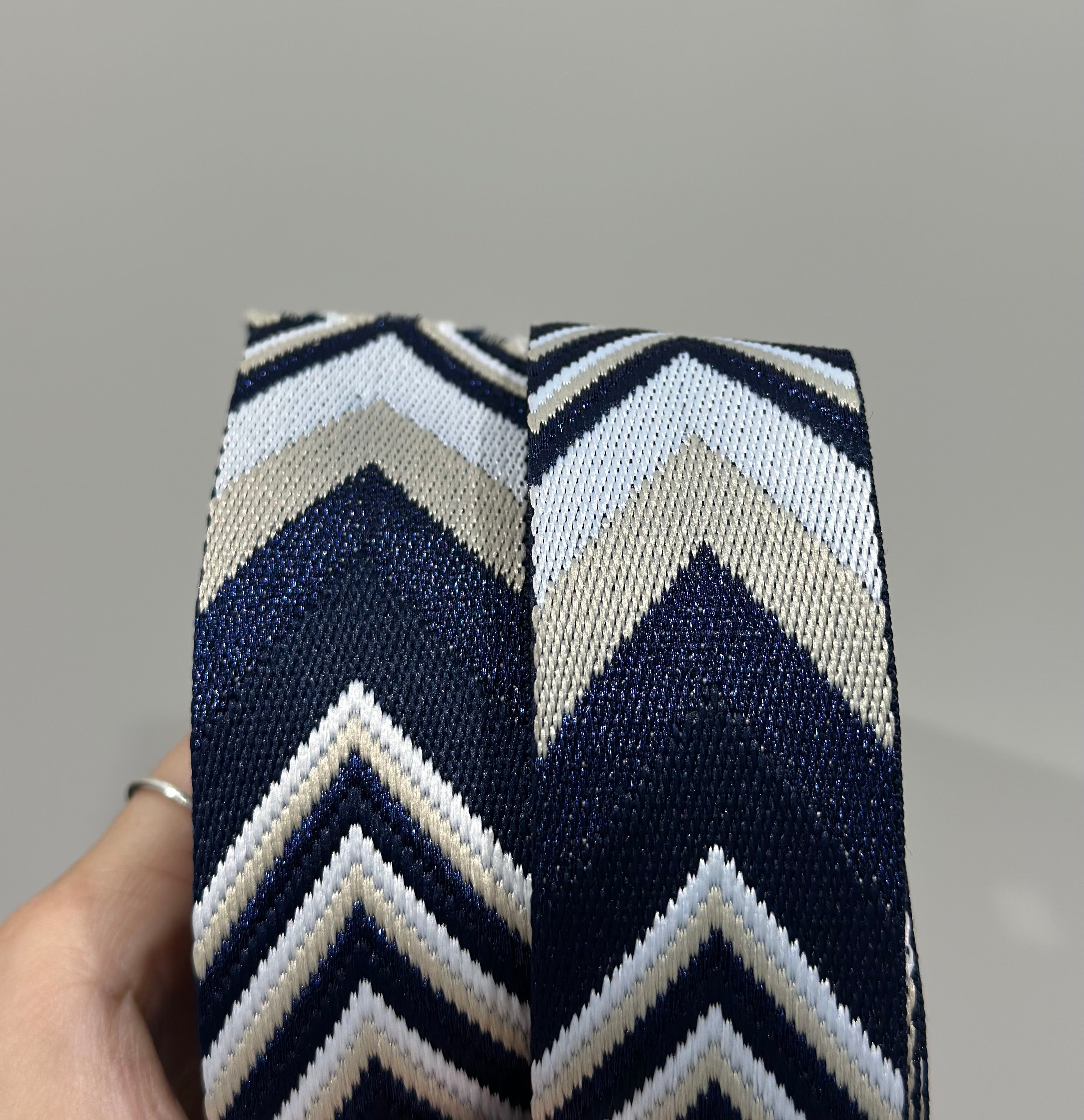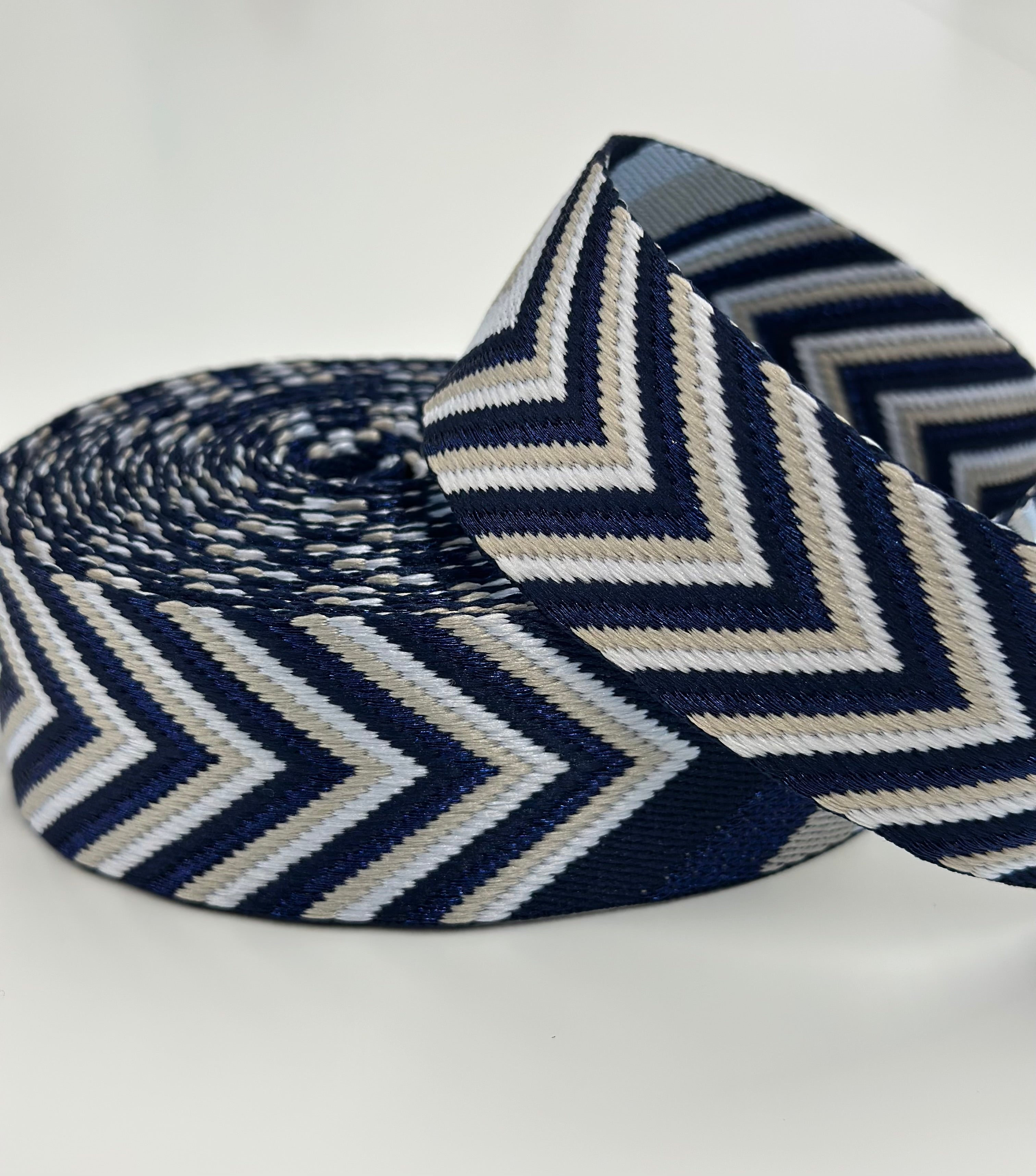 Navy/Cobalt/Beige Glitter Woven Chevron 1.5” Webbing