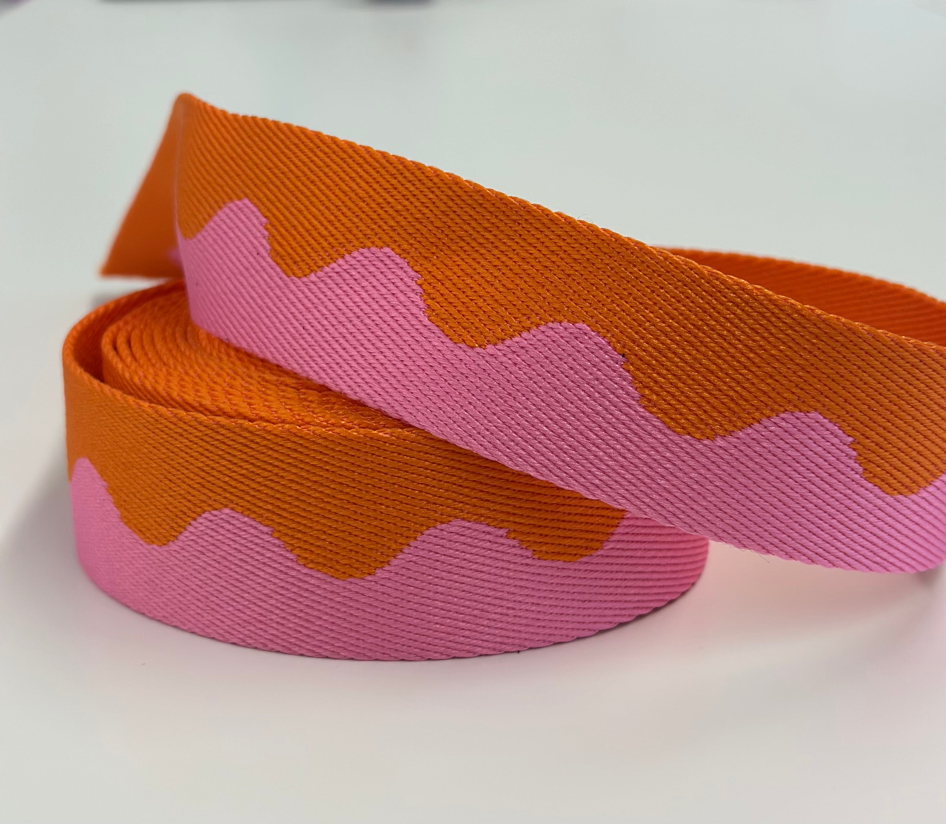 Pink/ Orange Two Toned Waves 1.5” Woven Webbing