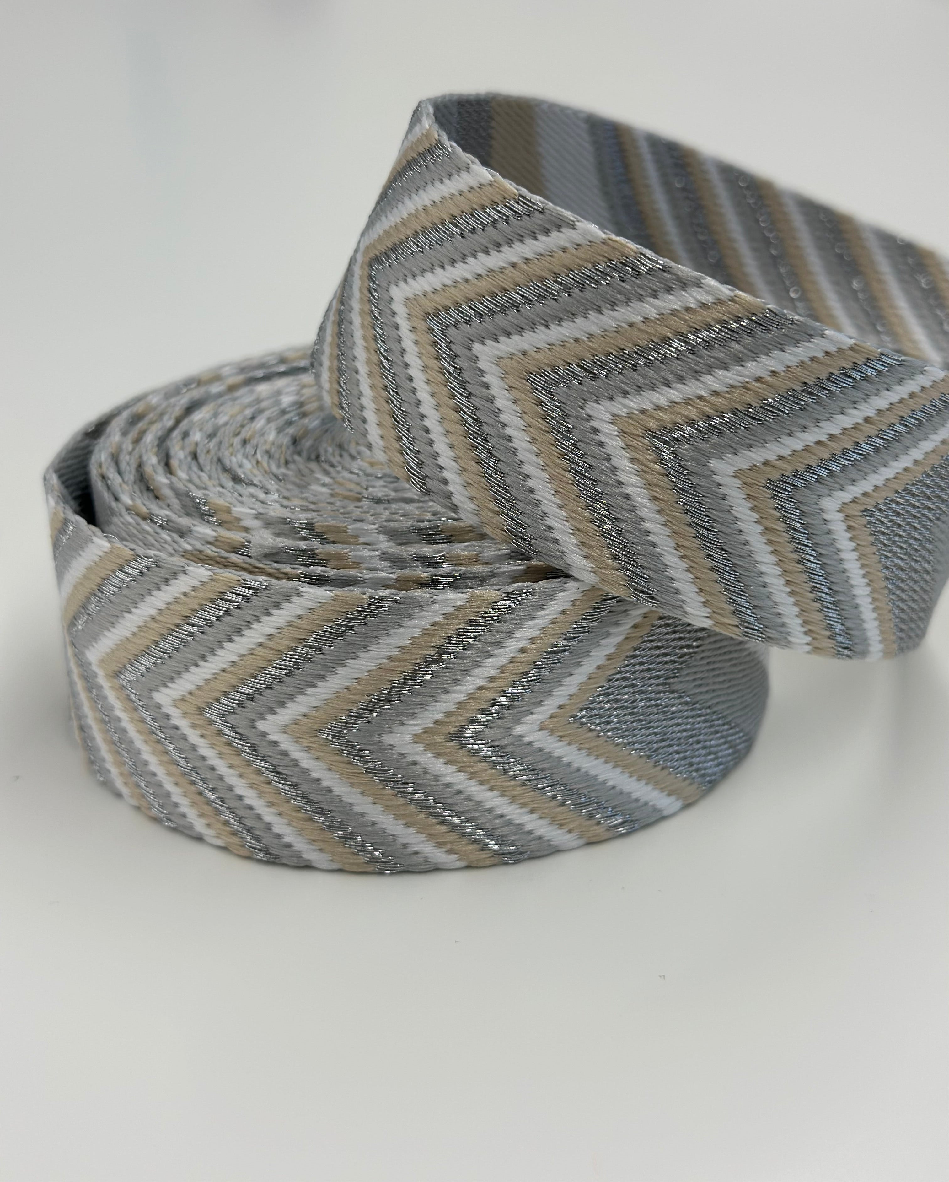 Silver/Tan/White Glitter Woven Chevron 1.5” Webbing