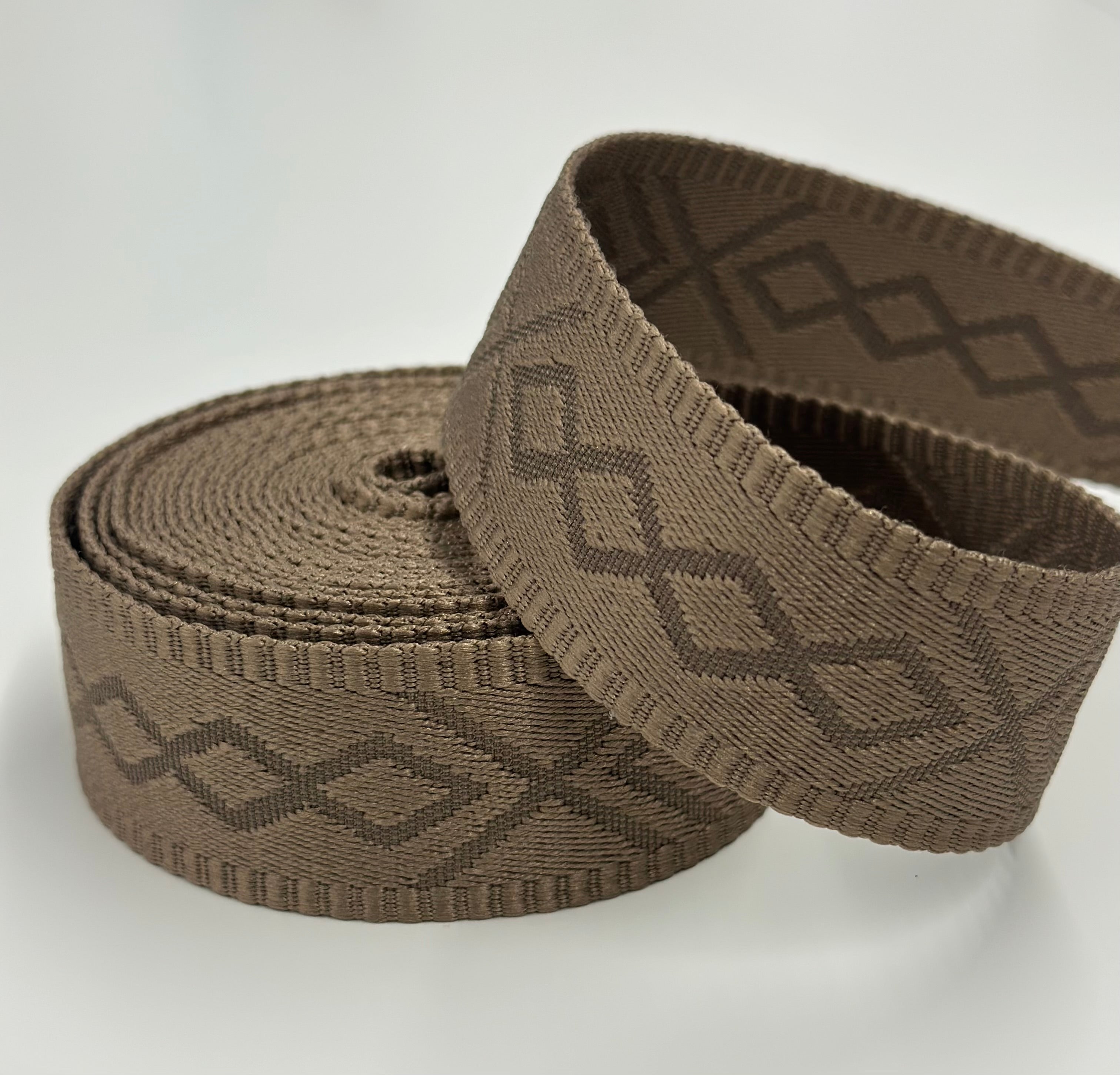 Elevate your bag designs with our Taupe Diamond Debossed Polyester Webbing. Crafted for durability and style, this webbing adds a sophisticated texture and strong support to any strap. Perfect for creating comfortable, long-lasting bag straps that stand out with subtle elegance. Ideal for both DIY projects and professional bag making.