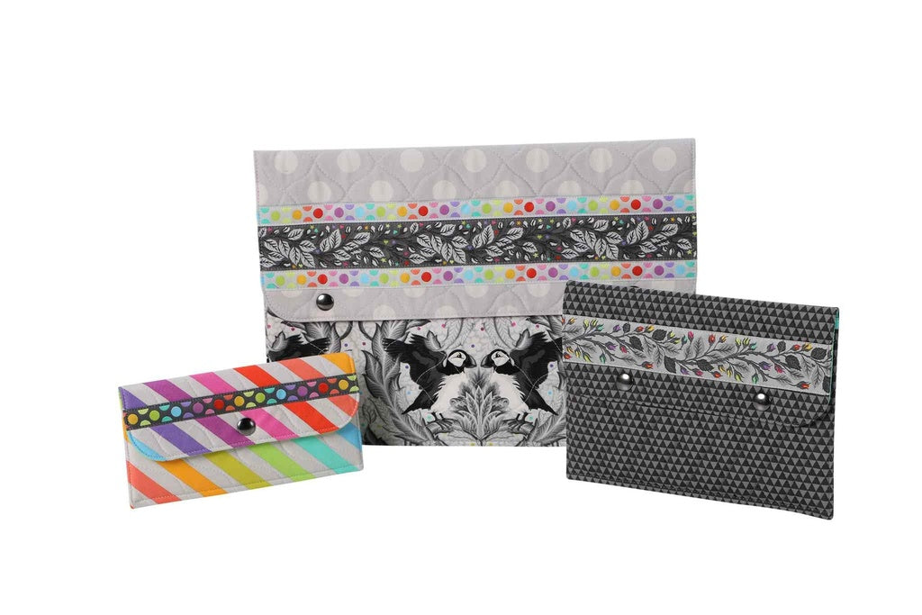 The pattern includes instructions for sleeves in two handy styles (horizontal and vertical), each in three sizes! Each features a flap with a snap closure, making them ideal for life on the go.